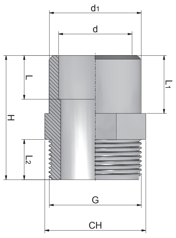 Applications: Connecting ABS pipework to threaded equipment, inline instruments, dosing systems and industrial components