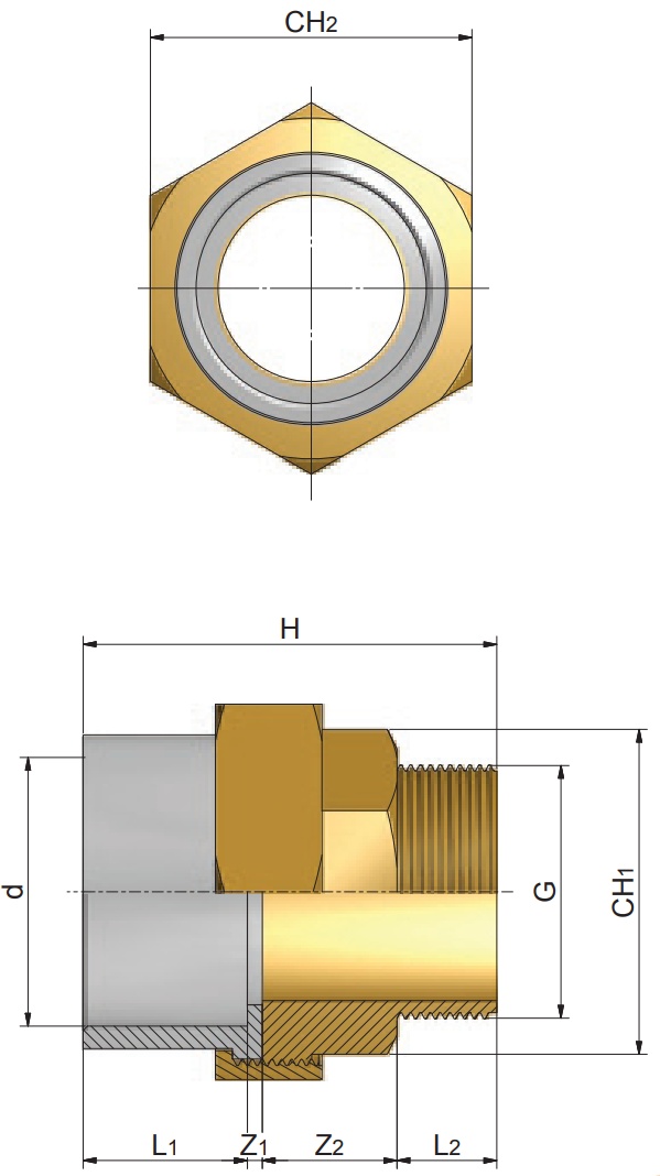 | Product Code | Nominal Size / d (inch) | G (inch) | L1 (mm) | L2 (mm) | CH1 (mm) | CH2 (mm) | Z1 (mm) | Z2 (mm) | H (mm) |