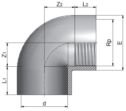 Product Code Nominal Size (inch) Rp (inch) L1 (mm) L2 (mm) Z1 (mm) Z2 (mm) E (mm)