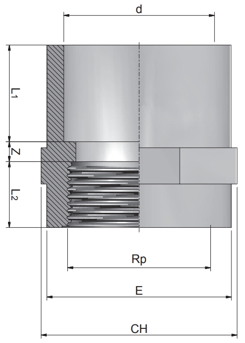 Product Code Nominal Size (inch) L1 (mm) L2 (mm) CH (mm) Z (mm) E (mm)
