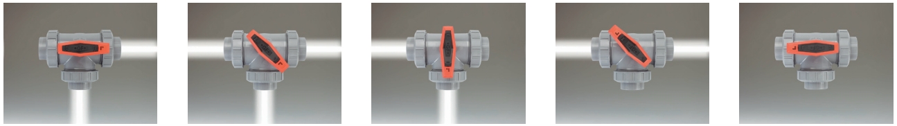 • L-port ball design: Ideal for diverting flow between outlets in 3-way systems