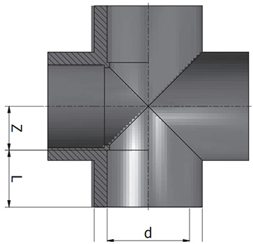Four-way system connection: Ideal for distributing or combining flow across intersecting pipelines