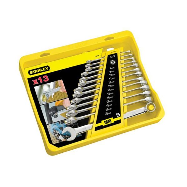 This 13-piece combi spanner set has a range of sizes, forged from chrome vanadium steel and finished with a nickel-chrome plating for corrosion protection.