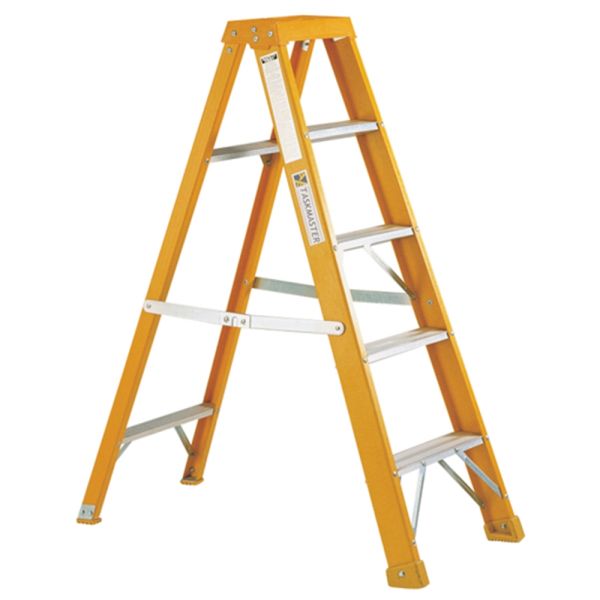These heavy-duty platform steps have non-conductive fibreglass stiles with wide serrated non-slip treads.