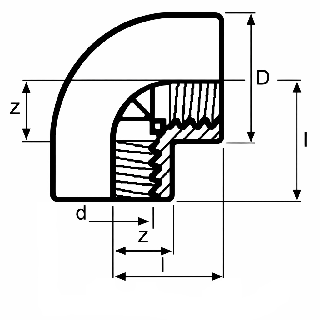 - Fitting type: 90° threaded elbow