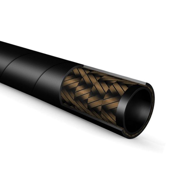 This hydraulic hose is suitable for petroleum-based hydraulic oil, water glycol-based fluids, water, and air.