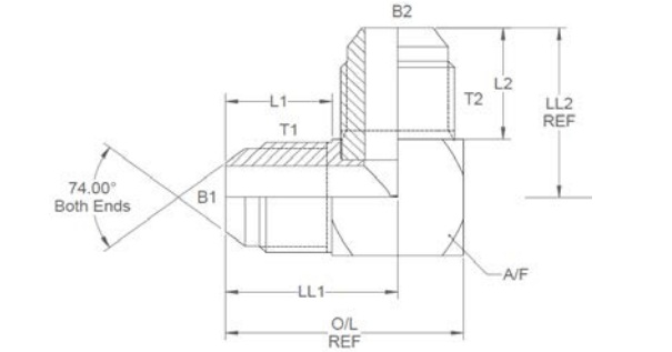 This compact 90° elbow features JIC male threads on both ends with a 37° cone metal-to-metal seal, ensuring a secure, leak-free connection in hydraulic and fluid transfer systems. The compact design makes it ideal for applications with restricted installation space, while its steel construction provides strength, durability, and long service life. Precision-engineered to BS EN 10277 standards, it offers exceptional sealing reliability and resistance to high operating pressures.