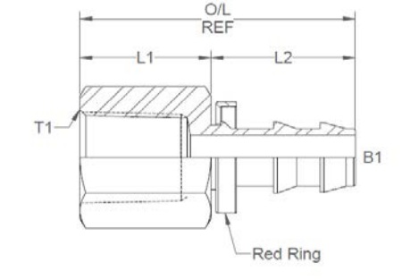 SKU Product Code Male Thread T1 (") To Suit Hose I.D T2 (") B1 (") L1 (") L2 (") O/L (") A/F (mm)