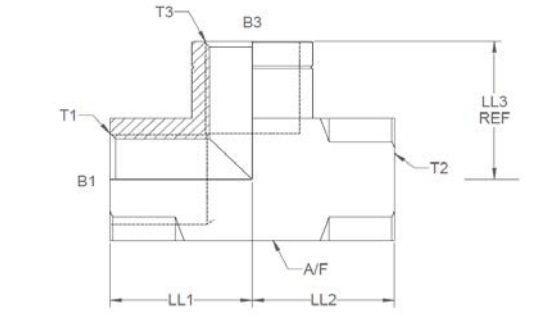 90° Tee with BSPP Fixed Female Connections: Versatile fitting for hydraulic systems