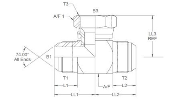 Thread Type: JIC male x JIC male run, JIC swivel female branch