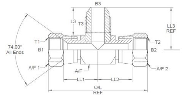 Thread Type: JIC swivel female x JIC swivel female run, JIC male branch