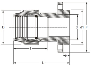 Product Code Manufacturer Code Size D (mm) L (mm) I (mm) H (mm) d (mm) d1 (mm) F (mm) DN