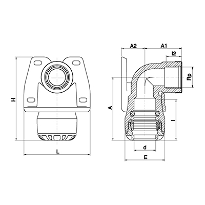 SKU Supplier Code d (mm) Rp (") A (mm) A1 (mm) A2 (mm) E (mm) H (mm) L (mm)