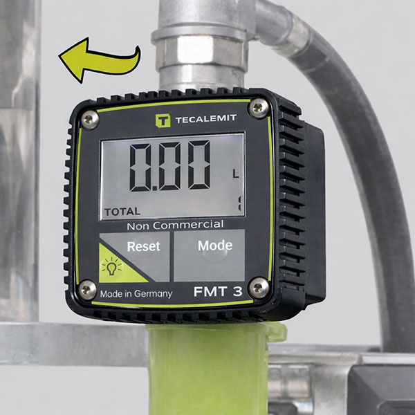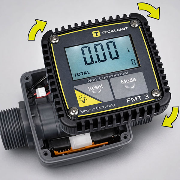 The display and housing can be rotated after installation, allowing the unit to be optimally positioned regardless of pipe orientation. With robust construction, precise measurement performance and long battery life, it is well-suited for both fixed installations and mobile dispensing systems.