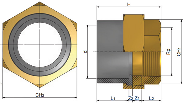 | SKU | Nominal Size / d / Rp (") | L1 (mm) | L2 (mm) | Z1 (mm) | Z2 (mm) | CH1 (mm) | CH2 (mm) | H (mm) |