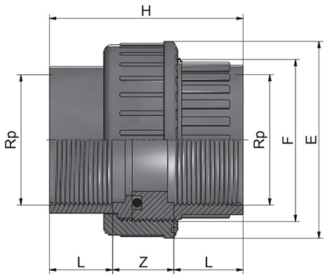 This PVCu threaded union is designed to provide a demountable connection between BSP threaded components within an imperial pipe system. Its three piece construction allows pipework, valves, or equipment to be disconnected easily for maintenance, inspection or replacement without cutting into the line.