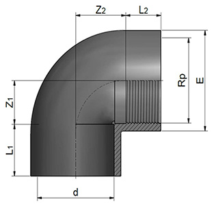 | SKU | Nominal Size (mm x inch) | d (mm) | Rp (inch) | L1 (mm) | L2 (mm) | Z1 (mm) | Z2 (mm) | E (mm) | Weight (kg) |