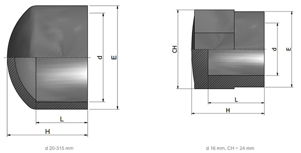 • Sizes: 16mm to 225mm