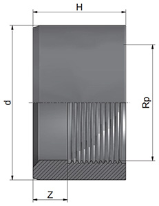 | SKU | Nominal Size (mm x inch) | d (mm) | Rp (inch) | L min (mm) | Z max (mm) | H (mm) | Weight (kg) |
