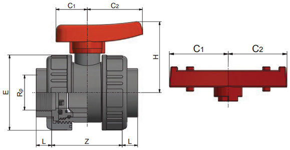 This double union ball valve is designed to be removed easily from a pipeline, making it well-suited to installations where servicing or future replacement may be required. The twin union connections allow the valve to be separated from the system without cutting pipework or disrupting adjacent components. Constructed from PVCu, the valve offers a durable and corrosion-resistant solution for a wide range of industrial and commercial applications. EPDM seals are supplied as standard (FPM replacements are available), providing dependable sealing performance when operating within normal system conditions. Threaded union ends allow the valve to be connected directly to compatible threaded pipework, offering flexibility during both installation and ongoing maintenance.
