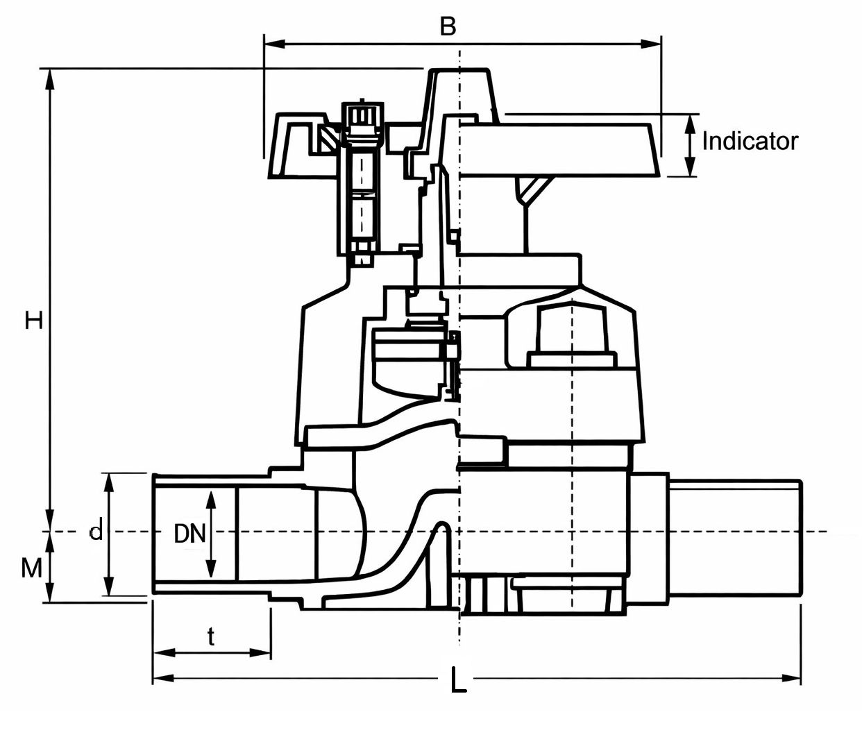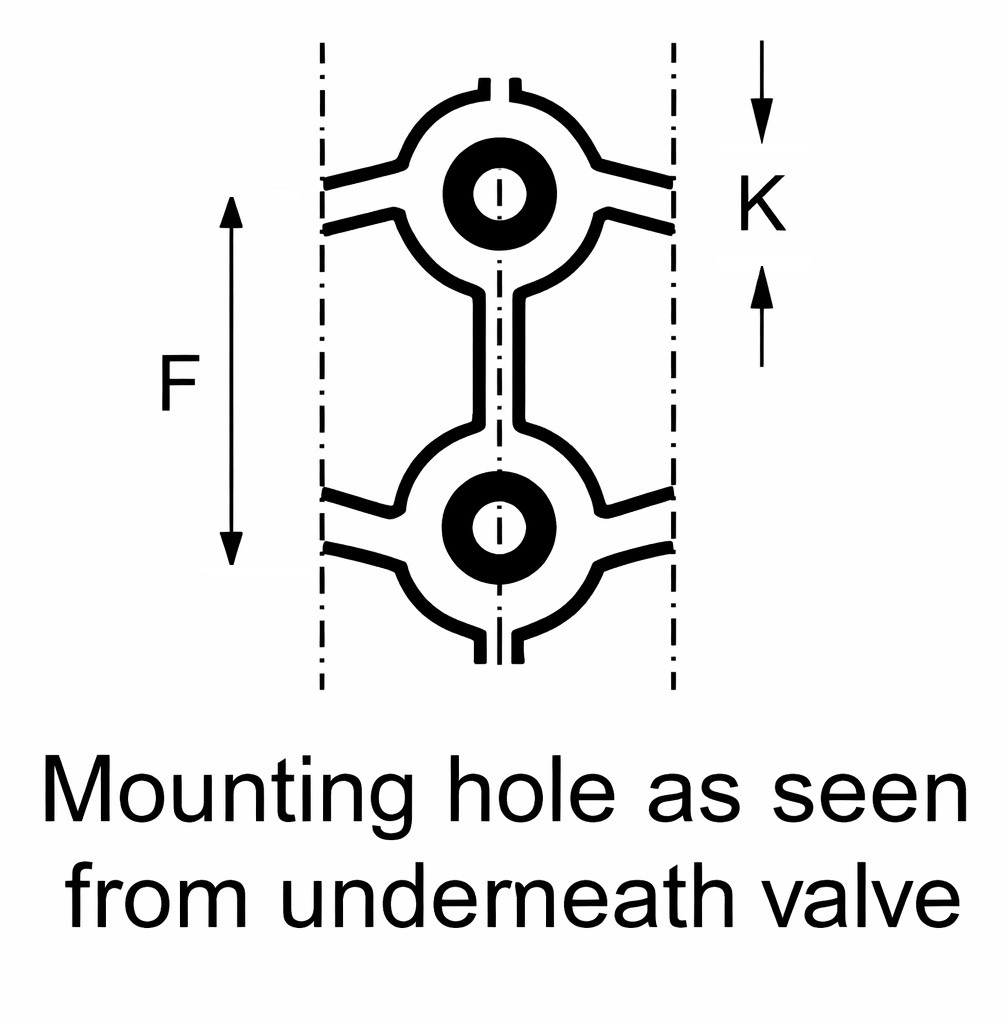 | Product Code | d (mm) | DN (mm) | Kv 100 I/m Δ = 1 bar | M (mm) | H (mm) | B (mm) | F (mm) | Lift (mm) | K (mm) | L (mm) | t (mm) | Pressure rating (bar) |