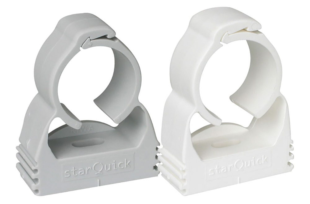 Lightweight, corrosion-free, and extremely quick to install, StarQuick clips are the go-to option for electrical installers and plastic pipe systems. The one-handed snap-in design allows fast pipe insertion, while the self-adjusting profile ensures a secure hold. Available in grey and white to suit visible installations or colour-coded systems and fully recyclable.